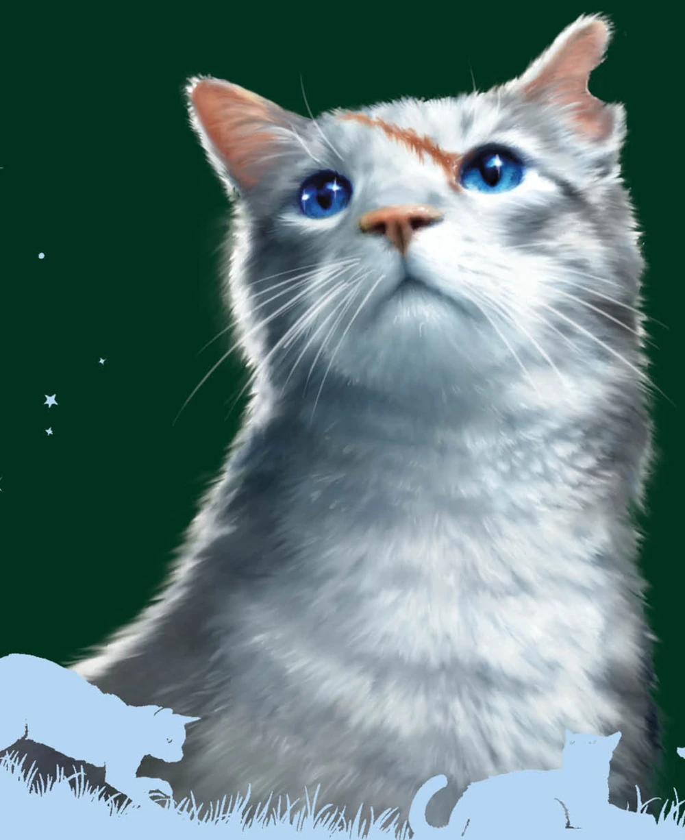 - Ellas se aventuran fuera de la maternidad del Clan del Trueno por primera vez mientras las contemplan los guerreros. Tormenta de Arena pregunta por sus nombres, y, orgulloso, Betulón anuncia cómo se llaman sus hijas. Centella comenta que a Pequeña Espinela y Pequeña Tórtola les quedan bien sus nombres. Glayo se percata de que una de las dos gatitas podría ser el tercer felino en la profecía que se le anunció a Estrella de Fuego: "habrá tres, sangre de tu sangre, que tendrán el poder de las estrellas en sus manos". El joven curandero opina esto ya que Carrasca se ha ido, y las hijas de Candeal bien son parientes de Estrella de Fuego. El abuelo de Pequeña Espinela, Manto Polvoroso, dice en broma a Betulón y Candeal que vigilen bien a sus hijas, ya que también son nietas de Nimbo Blanco; recordando cómo el gato blanco fue un problemático aprendiz para Estrella de Fuego cuando era joven. Nimbo Blanco afirma que está orgulloso de cualquier gato que comparta su sangre, y que defenderá con garras su opinión de quien diga lo contrario.