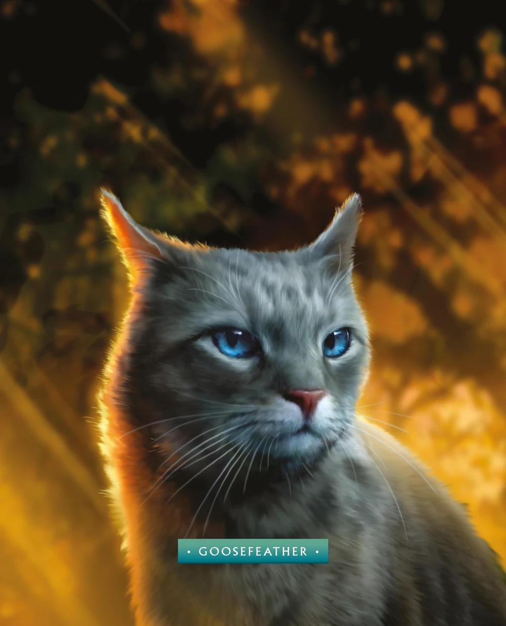 - Lunas más tarde, insta a Pelaje Azul a cuidar a Whitekit después de la muerte de Snowfur para evitar la influencia de Garra de Cardo. Cuando Garra de Cardoestá listo para suceder a Leonino como lugarteniente, Goosefeather le revela a Pelaje Azul que él sabe que Corazón de Roble es su pareja. Él le recuerda la profecía, y le sugiere que debería renunciar a sus cachorros para poder convertirse en líder en lugar de Garra de Cardo. Comparten una visión de Garra de Cardo cubierto de sangre, prediciendo el destino de Clan del Trueno bajo su gobierno.